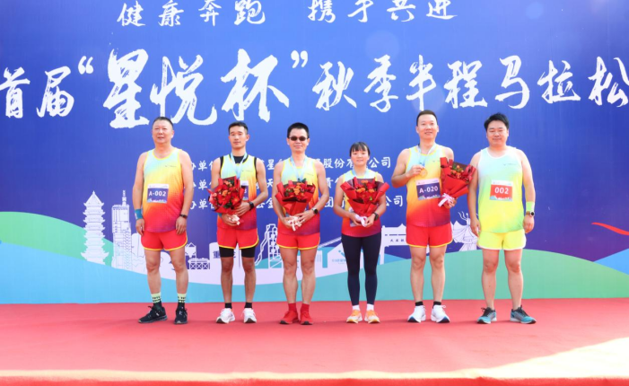 隨后,舉行隆重頒獎儀式,公司領(lǐng)導分別為前三名選手頒發(fā)獎牌和鮮花,全體參賽選手合影留念,星船城首屆“星悅杯”半程馬拉松比賽圓滿結(jié)束。
